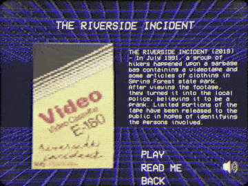 | Tags | Altgame, creepypasta, Halloween, Horror, ps1, PSX (PlayStation), Slasher, Survival Horror, vhs, Walking simulator |